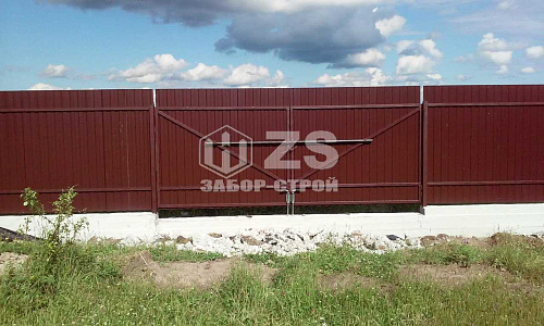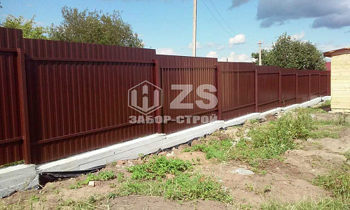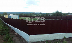 - Забор на ленточном фундаменте из профнастила 70 метров